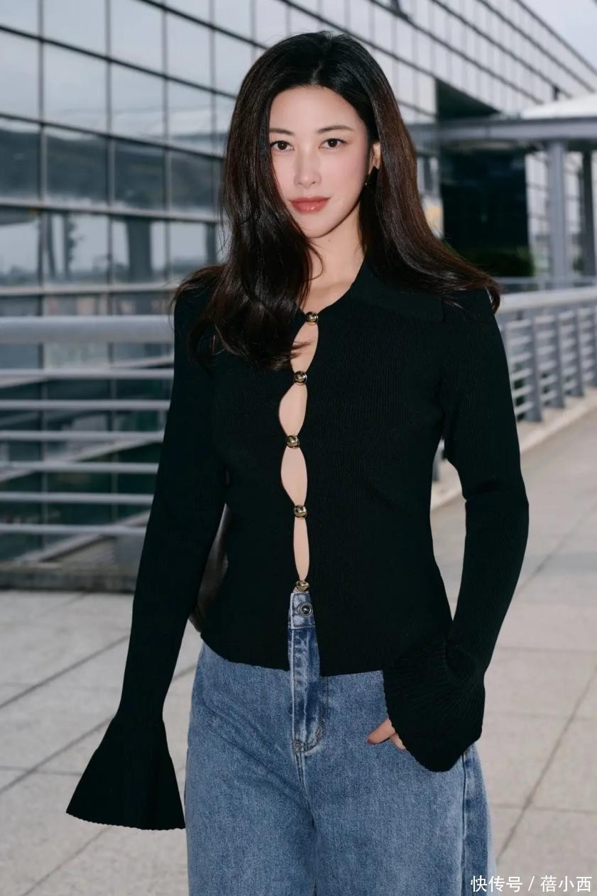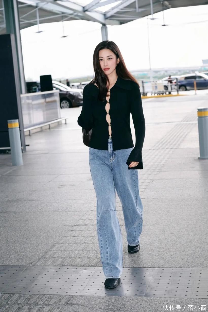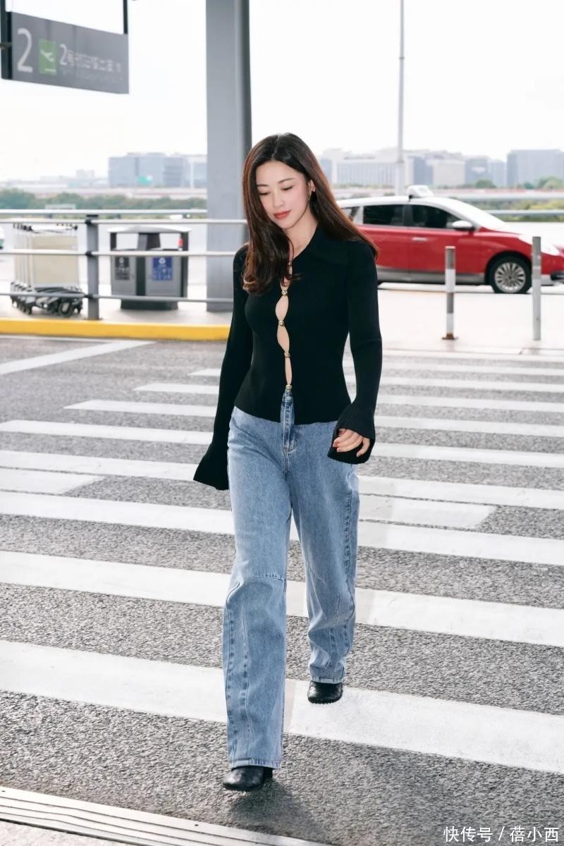 如果是真空穿的话,便会将身前部分肌肤露出来,现实生活中敢这么穿的人不多。牛仔裤松量刚刚好,微胖姐妹穿也不会觉得勒肌肤。